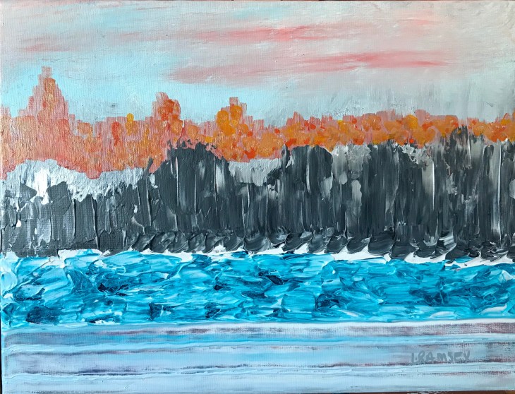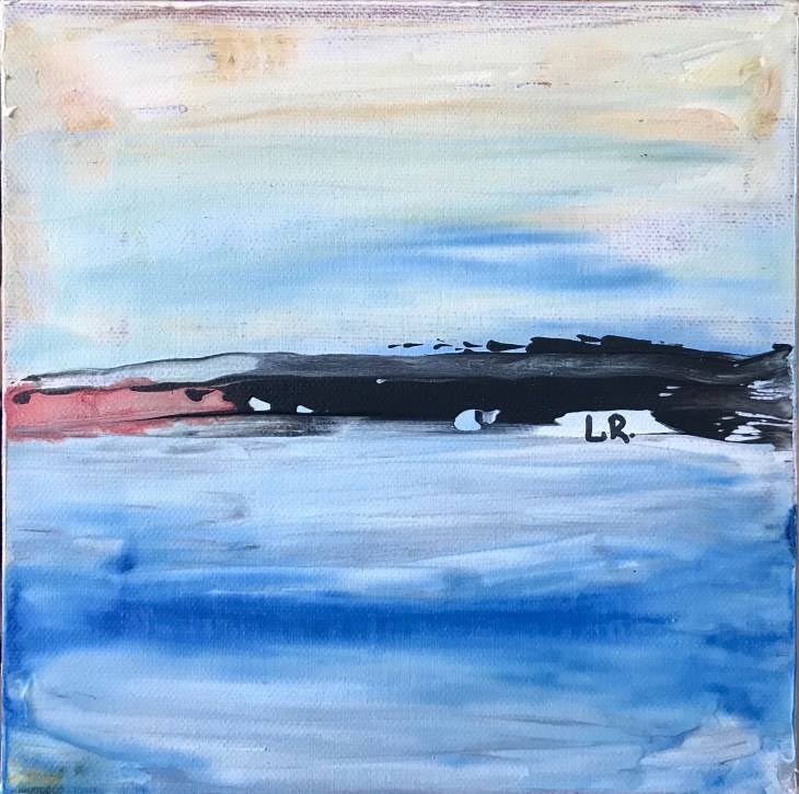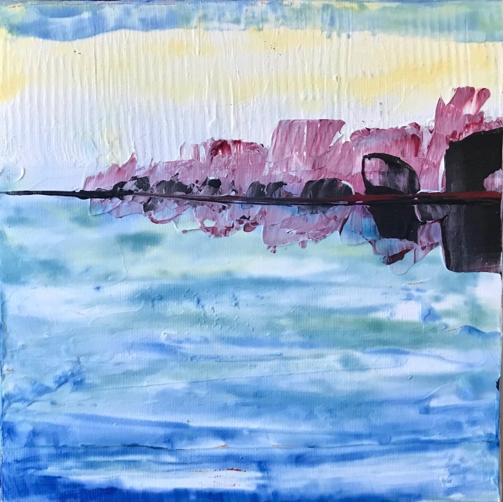 Hazy Waters, 8×8 acrylic on canvas panel