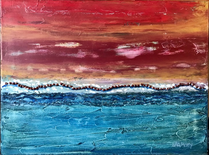 Sunset Beach, 12×16 Acrylic and beads on canvas