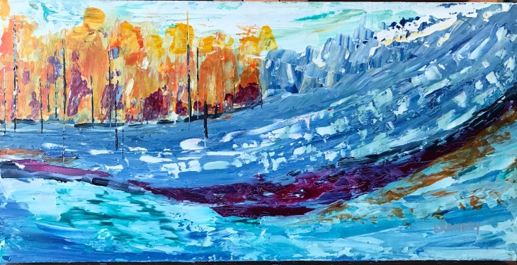 Valley, 11×14 acrylic and foil on canvas