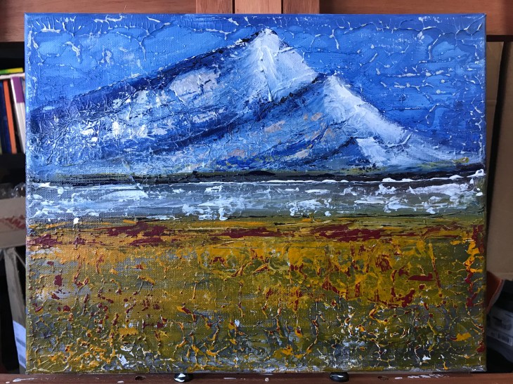 Mountain head, 11×14 Acrylic and foil on canvas