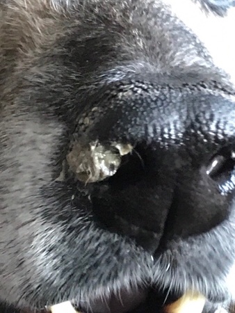 Her nose feels wet, as a dog’s nose should be. She doesn’t have any type of nose drainage. She doesn’t have any other symptoms that I am aware of.