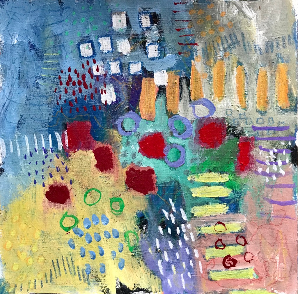 As I sat creating two 8”x8” paintings, one after another – towards the end of the second one I became fidgety. I felt myself wanting to hurry up and be done. I hadn’t spent all that much time on the two paintings overall.